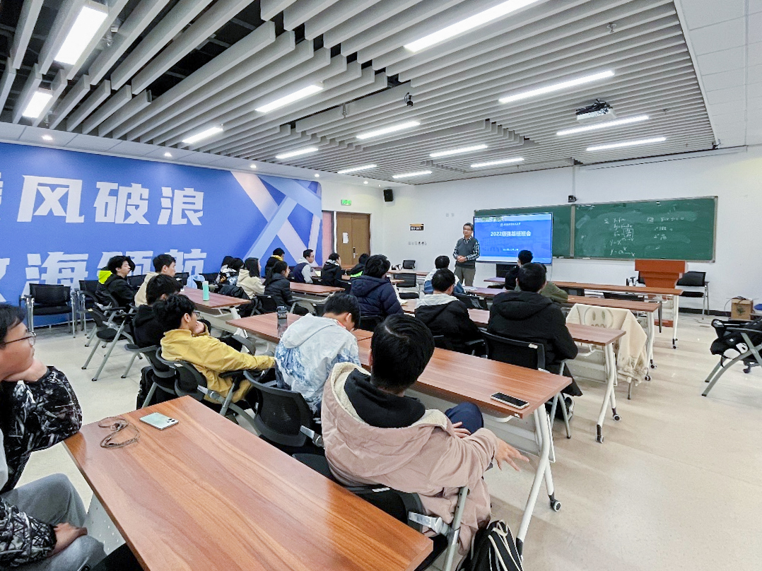 马声明为同学们梳理了本学期数学核心课程的逻辑框架,与同学们交流了数学课程的学习方法,并以抽象代数的学习为例,帮助同学们理解领会数学高度的抽象性、严密的逻辑性和广泛的应用性。他表示,数学学习是在不同思想的碰撞中不断完善、不断进步的过程,鼓励同学们营造积极讨论、充分交流、勇于创新、敢于质疑的优良学风,在思想碰撞中相互激励、共同进步。