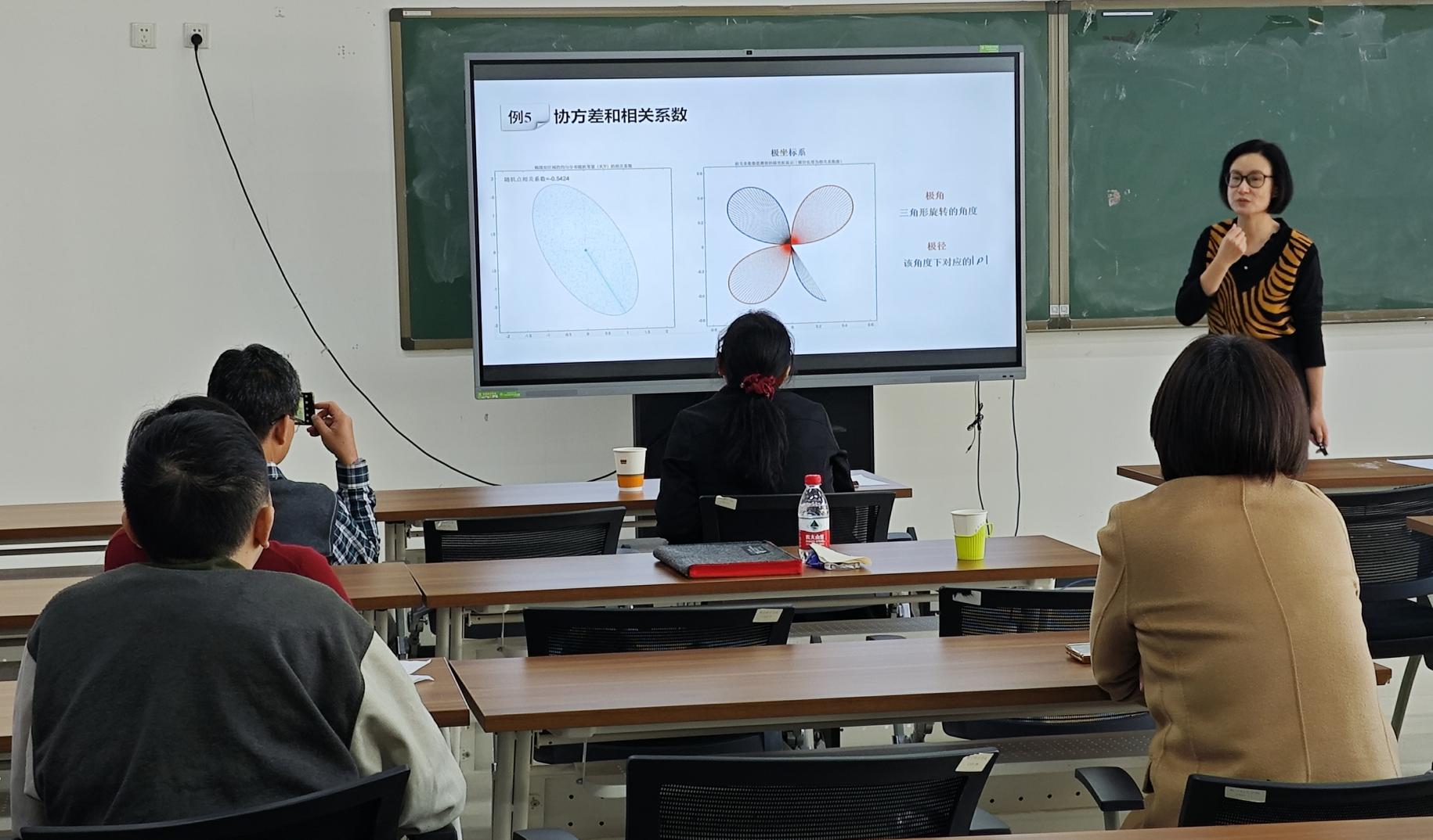 此次报告中,臧老师主要从北京科技大学数学学科青教赛及教学团队简介、青教赛作品教学设计理念及实例、课堂教学设计—以概率论与数理统计为例、混合式教学模式初探四个方面为老师们分享了教学方面的方法与经验。在第一部分中,臧老师强调了团队协作的重要性,一门课程的优秀教学离不开团队中每位老师的共同努力,展现了课程组老师及时沟通、互相学习的必要性;在第二和第三部分中,臧老师从青教赛作品的优秀成果出发,展示了以动画模拟为特点的教学特色,同时讲述了教学设计理念,以具体例子体现了趣味性、创新性与拓展性等;在最后的部分,臧老师介绍了混合式教学模式,采取线上与线下结合的方式,以此突出学生学习主体地位,注重应用创新能力的培养。