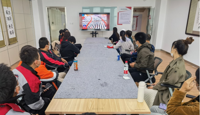 10月16日,都市芳园社区党支部组织辖区内各行业从业人员与学生党支部在东小口镇党群服务中心共同观看党的二十大开幕会。
