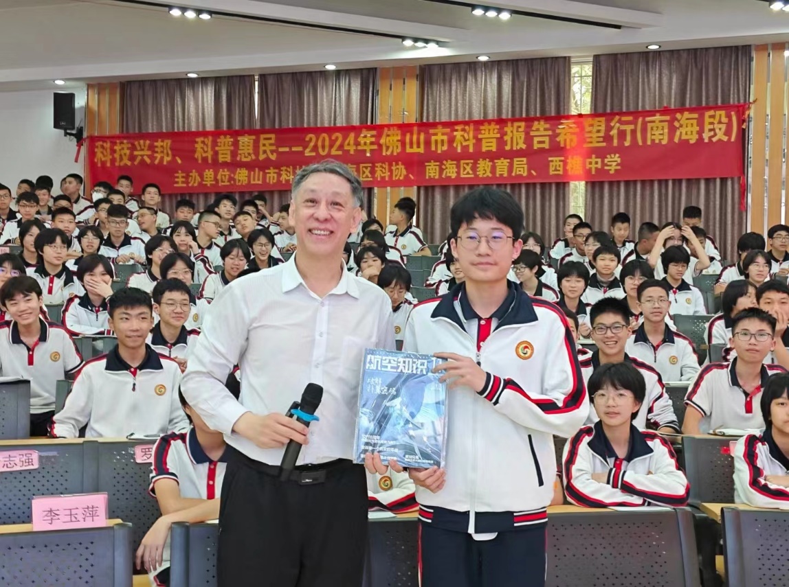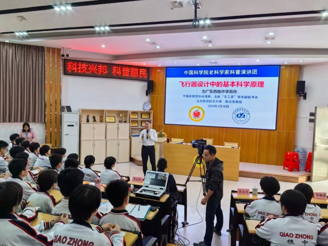 为弘扬以“空天报国”为内核的北航精神,点燃中小学生的空天梦想,318日至22日,作为中国科学院老科学家科普演讲团成员,陈志英教授来到广东,为石门中学、国华纪念中学、顺德一中等10所中小学主讲10场航空科普系列讲座,引领学生们踏上了一场引人入胜的科学之旅。