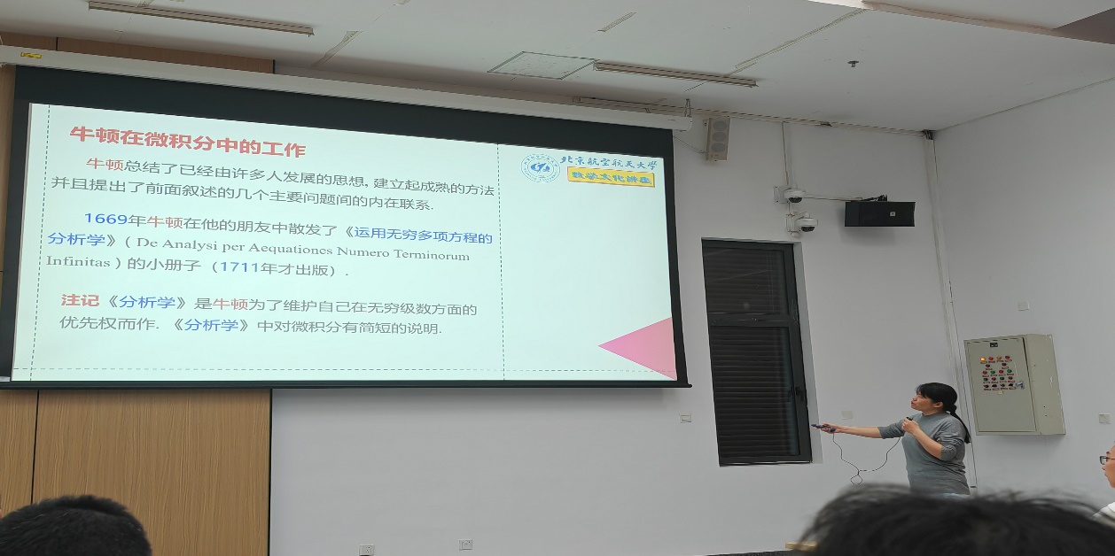 2023年10月18日,理科数学分析教学组开展了本学期第二次数学文化系列讲座,高颖辉老师做了题为“牛顿、莱布尼茨与微积分”的精彩演讲。
