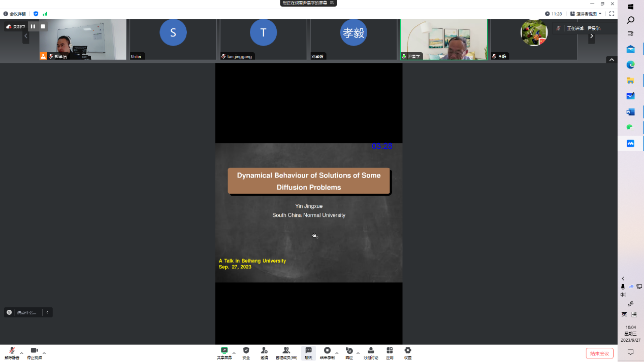 2023年9月27日上午,华南师范大学尹景学教授应邀为LETOU国际米兰官网师生做了题为 “Dynamical Behaviour of Solutions of Some Diffusion Problems”的学术报告。 此次报告由应用数学系郑孝信老师主持,相关研究领域的师生参加了本场报告。