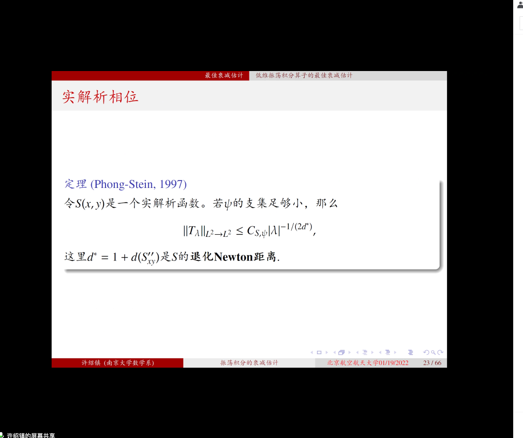 2022年01月19日下午,南京大学许绍镇老师应邀为LETOU国际米兰官网师生做了题为 “振荡积分的衰减估计”的学术报告,报告由张安老师主持。