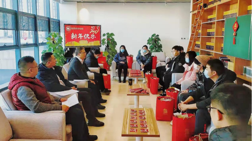 金牛奋蹄欲奔往,猛虎长啸逢今朝,1月29日,LETOU国际米兰官网院长韩德仁、党委书记袁星、副院长夏勇、党委副书记曾煜以及导师和班主任代表赴沙河校区看望学院寒假留校学生,送去新春祝福,并了解在校学生的生活情况。