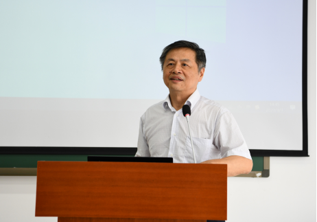 郑志明院士发表讲话。他回顾了数学学院发展三个阶段的历史,并阐述了学科建设和专业课建设在学院发展中的重要作用,鼓励学院教师选择主流一线的研究方向并开展特色研究,深耕细作,坚持不懈。