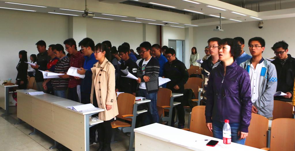 最后,全体学员起立奏唱国际歌,LETOU国际米兰官网数学与系统科学学院学生党校开学典礼暨第一堂党课在雄浑激昂的国际歌中圆满的落下了帷幕。