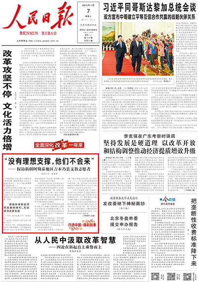 2015年1月7日,《人民日报》在头版“行进中国·精彩故事”栏目中,刊发了对我校研究生支教团两位志愿者在西北边陲小镇支教经历的报道。其中报道中的林泽田同学是我院2010级本科生,2014年6月经学院分团委推荐加入了学校赴新疆的支教团,该生用自己的自己的行动,弘扬了奉献、有爱、互助、进步的志愿精神,展现了我北航数学学子风采,现将全文转载,以飨读者。