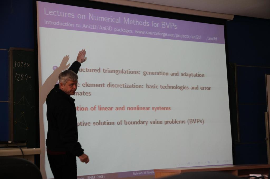 4月1日,Yuri教授就非结构三角自适应网格的生成,有限元方法的误差估计等技术做了详细的介绍。4月2日上午,Yuri教授为我们展示了俄罗斯科学院在自适应非结构网格的生成和边值问题的自适应求解等方面所取得的研究成果。