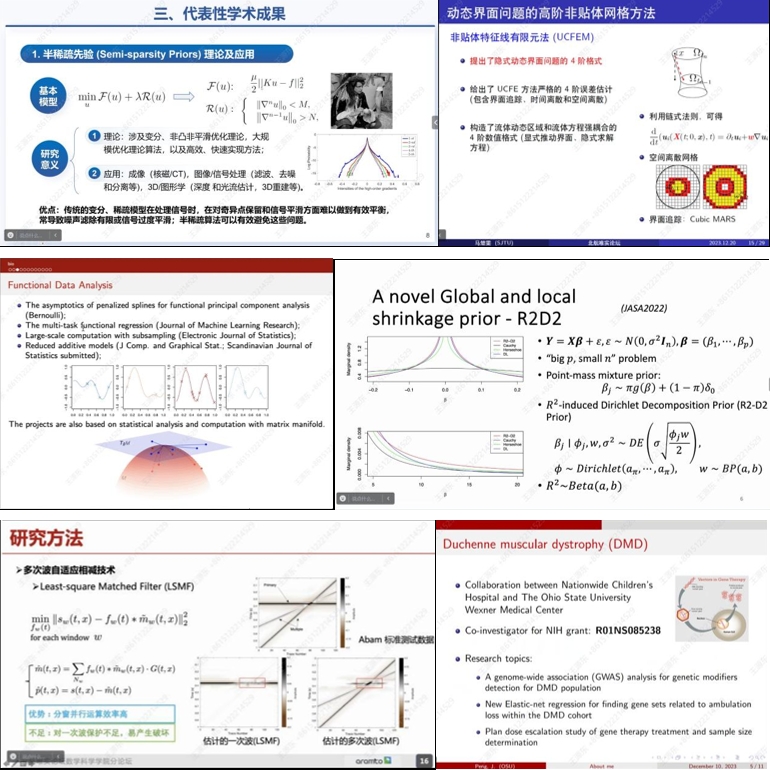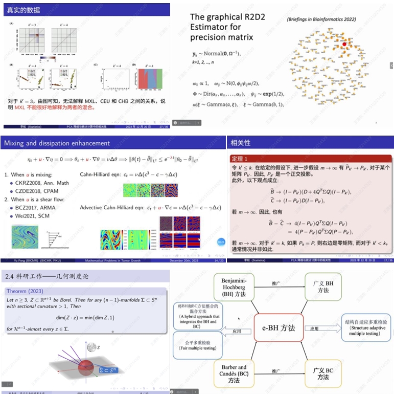 随后,30位青年学者做了精彩的学术报告,报告内容涉及计算机视觉和几何优化、偏微分方程和几何分析、自守形式、生物统计学、流体力学中的耗散增强效应、高维统计、复杂调查数据分析、绕勘探地球物理、统计学、生物信息学、分布式计算、李群上的调和分析与解析数论、机器学习及其在科学与工程计算中的应用、代数几何、在自由界面问题的高阶数值格式、麦克斯韦方程的量子算法、函数数据分析、概率统计、混成系统、概率论与随机分析、非线性色散偏微分方程、解析数论与非线性偏微分方程、几何测度论、变分分析、可积系统、多复变、确信可靠性理论、随机矩阵理论、图像处理和对低级视觉、向列液晶(NLC)和部分有序材料的数学问题等。