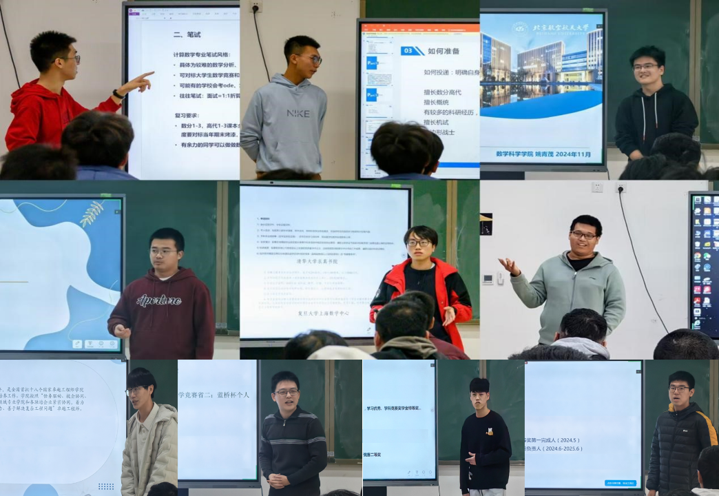 为进一步做好学生学涯服务指导,帮助学生明确自我定位、探索未来之路, 11月13日和17日下午,LETOU国际米兰官网“数见未来”系列分享会之2024年秋季学期推免经验分享会于沙河主楼E404举行。陈涵之、窦义锟、梁诺靖、梁毅轩、任涛、王菲帆、武晨旭、徐晓东、姚青茂、章谦等10名2021级本科生为学院近百名2022级、2023级本科生进行了交流分享。