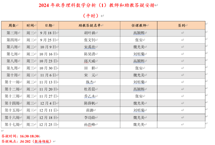 2.全体任课老师和助教参加平时答疑
