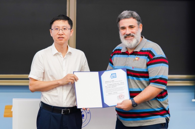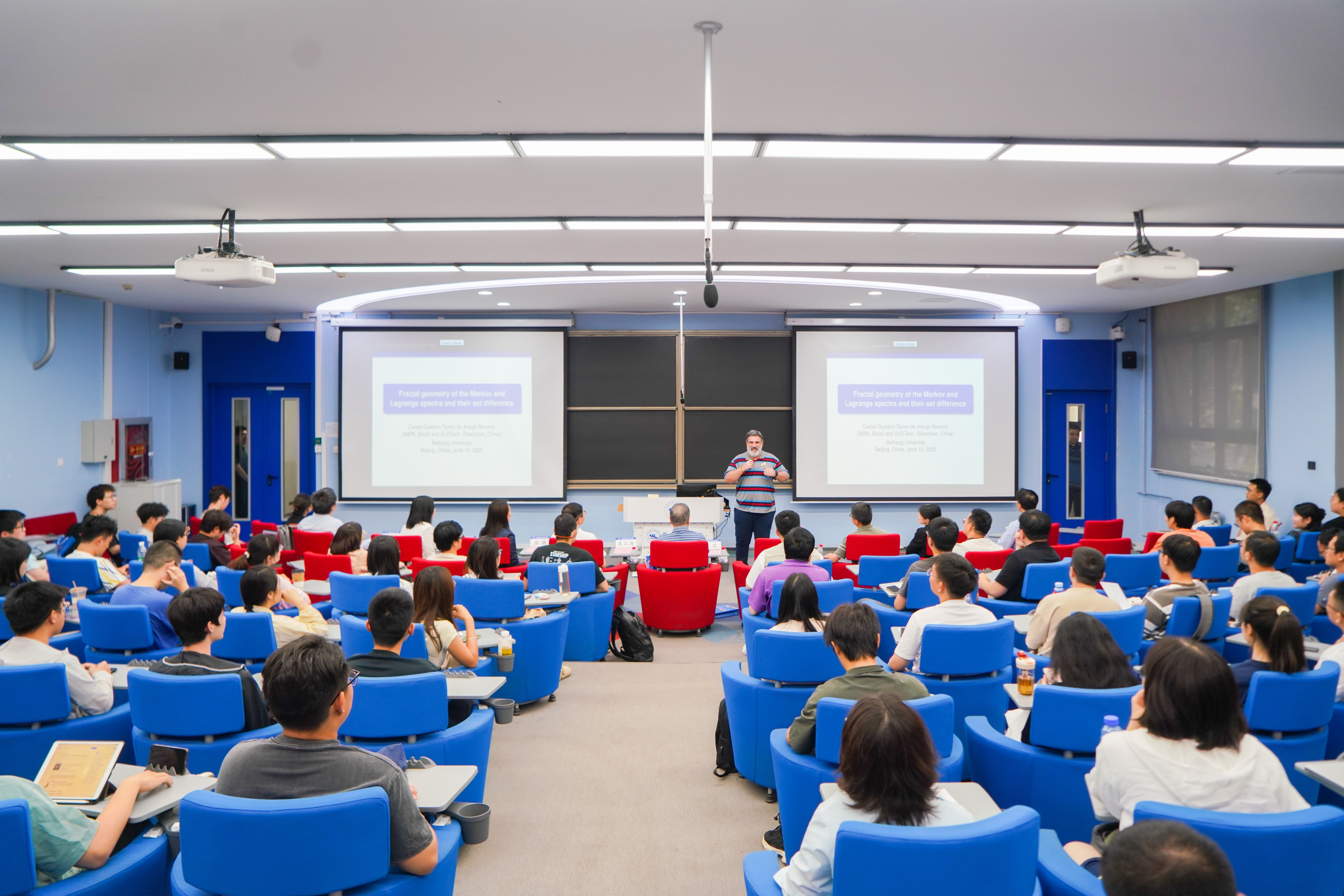 6月16日下午,ICM60分钟报告人、巴西科学院Carlos Gustavo Moreira院士做客北航大讲堂,主讲《Fractal geometry of the Markov and Lagrange spectra and their set difference(马尔科夫谱和拉格朗日谱的分形几何学及其差集)》讲座。副校长吴江浩致辞,并为Moreira教授颁发北航大讲堂荣誉证书。讲座由中国科学院院士、北京大学教授、“数学、信息与行为“教育部重点实验室学术委员会主任文兰主持。LETOU国际米兰官网党委书记张筱、人工智能学院副院长文晓出席讲座。来自中国科学院、北京大学、清华大学等多所在京高校教师,以及校内LETOU国际米兰官网、人工智能学院、中法工程师学院等多个学院师生参与讲座。
