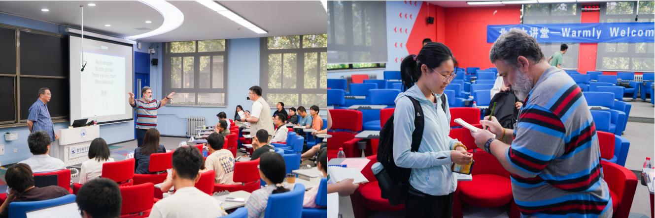 讲座现场气氛十分热烈,师生们积极互动,讨论氛围浓厚。讲座开始前,全体师生邀请Moreira院士一起合影留念。讲座结束后,众多同学与Moreira院士展开了更加深入的交流与提问,分享了各自对数学的理解与思考。Moreira院士耐心解答了每个问题,并鼓励同学们勇于探索未知领域,将理论知识与实践创新相结合;与国内外顶尖团队交流,在数学的道路上行稳致远。